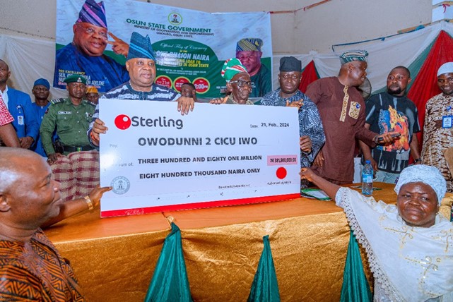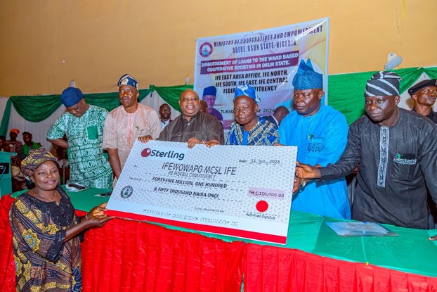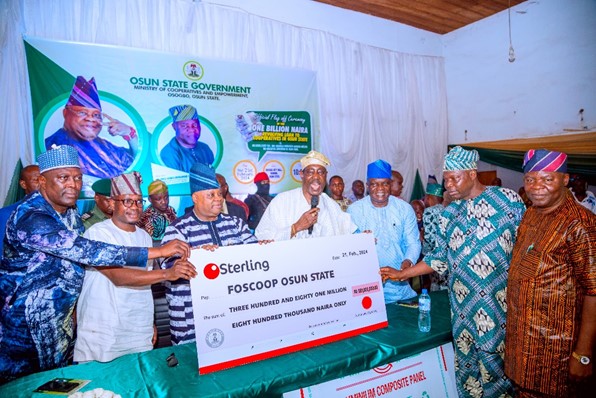 PRESENTATION OF DUMMY CHEQUE OF OSUN COOPERATIVE REVOLVING LOAN TO WARD-BASED COOPERATIVE