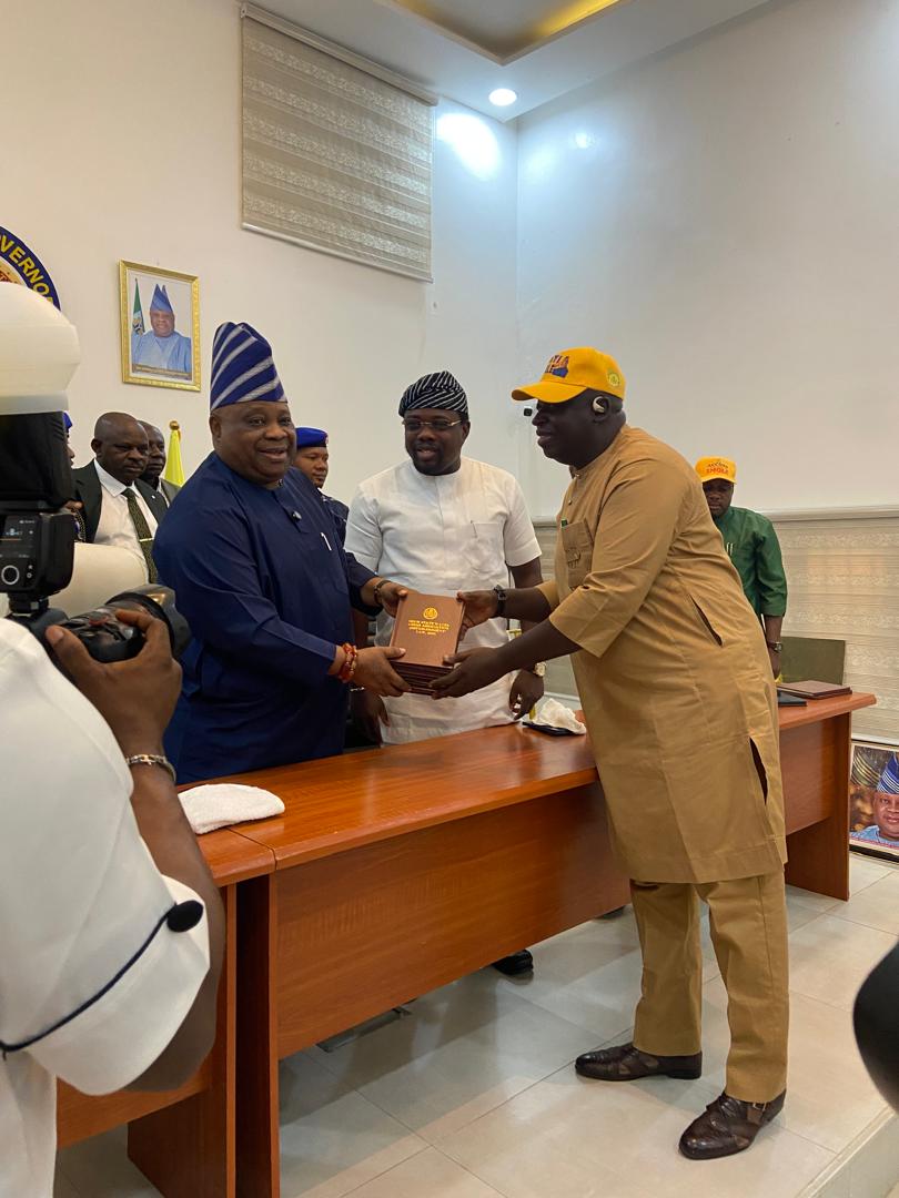 The Osun State Water User Association Law was assented to by His Excellency, Asiwaju Ademola Nurudeen Jackson Adeleke, and presented to the Honourable Commissioner for Water Resources, Hon. Sunday Olufemi Oroniyi. The law provides a framework for sustainable and equitable water use for irrigation across Osun State.