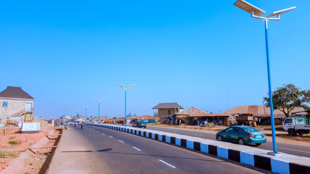 To enhance the road’s modern aesthetics, we have completed the landscaping of all four roundabouts, giving them a facelift. Additionally, the entire 6 km dual carriageway has been equipped with solar-powered street lights, ensuring that IMOLE (light) reaches every section of the road.